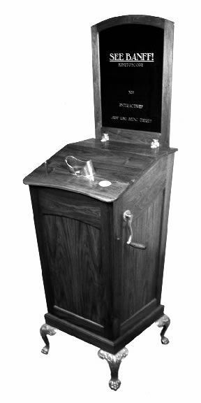 experience housed in a cabinet resembling a century-old kinetoscope,